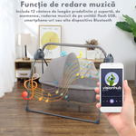 - Functie de telecomanda la distanta: Cu telecomanda inclusa, parintii pot ajusta usor viteza balansului si functiile muzicale de la o distanta de pana la 5 metri, oferindu-le un confort sporit.