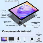 Tableta vine cu o tastatura detasabila si un mouse, transformand dispozitivul intr-un laptop portabil ideal pentru lucru, studii, editare de documente si notite rapide.
