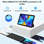 📱 Performanta excelenta cu procesor Octa-Core Allwinner A523 Tableta VISIONHUB 2-in-1 este echipata cu un procesor puternic Octa-Core Cortex-A55 ce ofera o performanta de 6x mai mare comparativ cu modelele...
