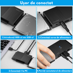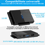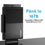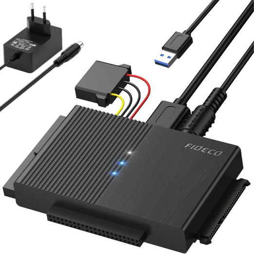 Adaptor FIDECO USB 3.0 la SATA/IDE pentru Hard Disk-uri 2.5/3.5 HDD si SSD, Compatibil cu Windows, Mac, Linux & Chrome OS, Transfer Ultra Rapid 5Gbps, Suport pana la 16TB, Plug & Play, Cu sursa de alimentare, Ideal pentru Backup, Gaming si Transfer Date