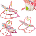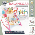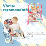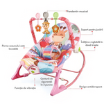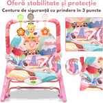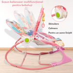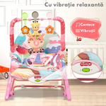 Balansoar si scaun electric 3 in 1 pentru bebelusi, VisionHub®, Multifunctional cu Cantece si vibratii linistitoare, Centura in 3 puncte si Spatar Reglabil, bara cu jucarii, husa detasabila, 0-18kg, roz