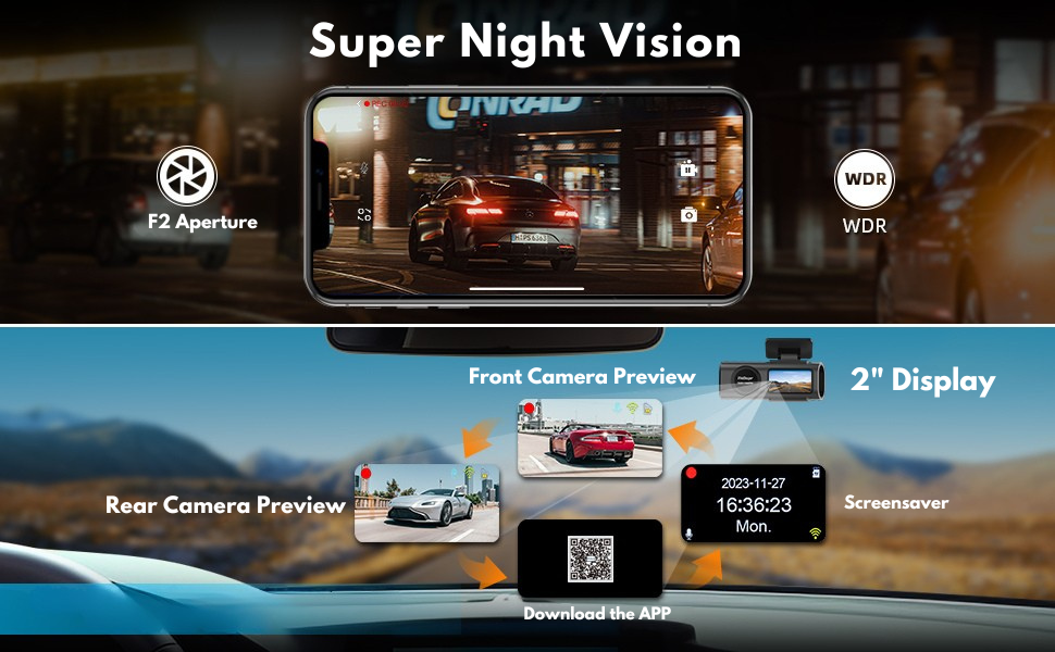 Rezolutie 4K Ultra HD (3840 x 2160p): Camera frontala capteaza imagini extrem de clare si detaliate, ideale pentru identificarea numerelor de inmatriculare, semnelor de circulatie si altor elemente importante. Camera din spate, cu rezolutie 1080P (1920 x 1080p), completeaza perfect sistemul, oferind o vedere completa in orice directie.