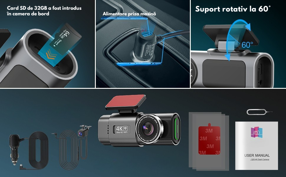 Camera Auto Dubla 4K Ultra HD cu Wi-Fi, GPS si Super Night Vision – Protectie Completa si Monitorizare Avansata