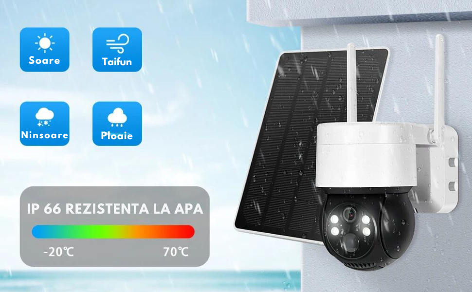 - Rezistenta la Intemperii IP65: Camera este construita pentru a rezista la conditii meteo extreme, inclusiv ploaie torentiala, praf si zapada. Protectie impermeabila IP65 asigura functionarea continua in orice mediu.