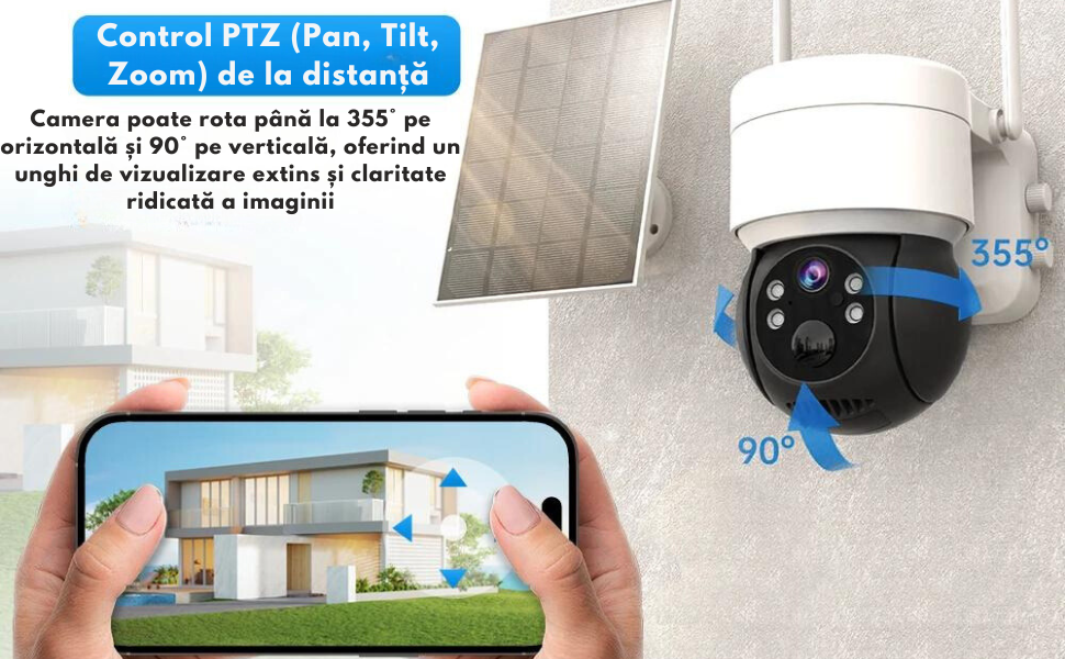 - 360° Panoramic View: Camera ofera o vizualizare panoramica de 360°, rotire orizontala de 355° si verticala de 90°, astfel incat sa monitorizati fiecare colt al casei dvs.