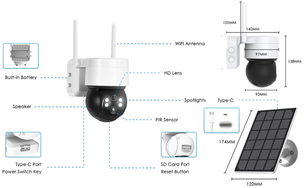 Protejati-va casa si familia cu aceasta camera de supraveghere exterior cu panou solar integrat si baterie reincarcabila de 4000mAh, care ofera o autonomie de pana la 180 de zile in modul standby. Incarcarea solara rapida in doar 12 ore asigura o functionare continua fara sa fie nevoie de conectare la reteaua electrica. Perfecta pentru locatii fara acces facil la o sursa de energie.