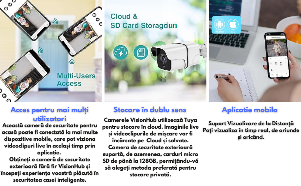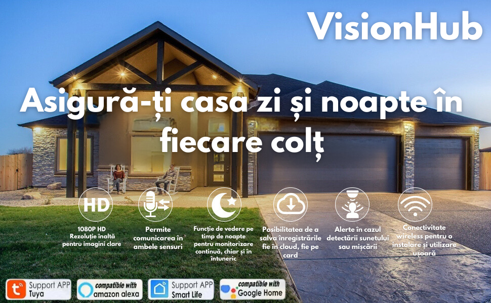 Alege camera de supraveghere VisionHub pentru o solutie de securitate completa, fiabila si usor de utilizat, ideala pentru protejarea casei si a familiei tale. Indiferent daca esti acasa sau departe, vei avea mereu liniste stiind ca totul este sub control.