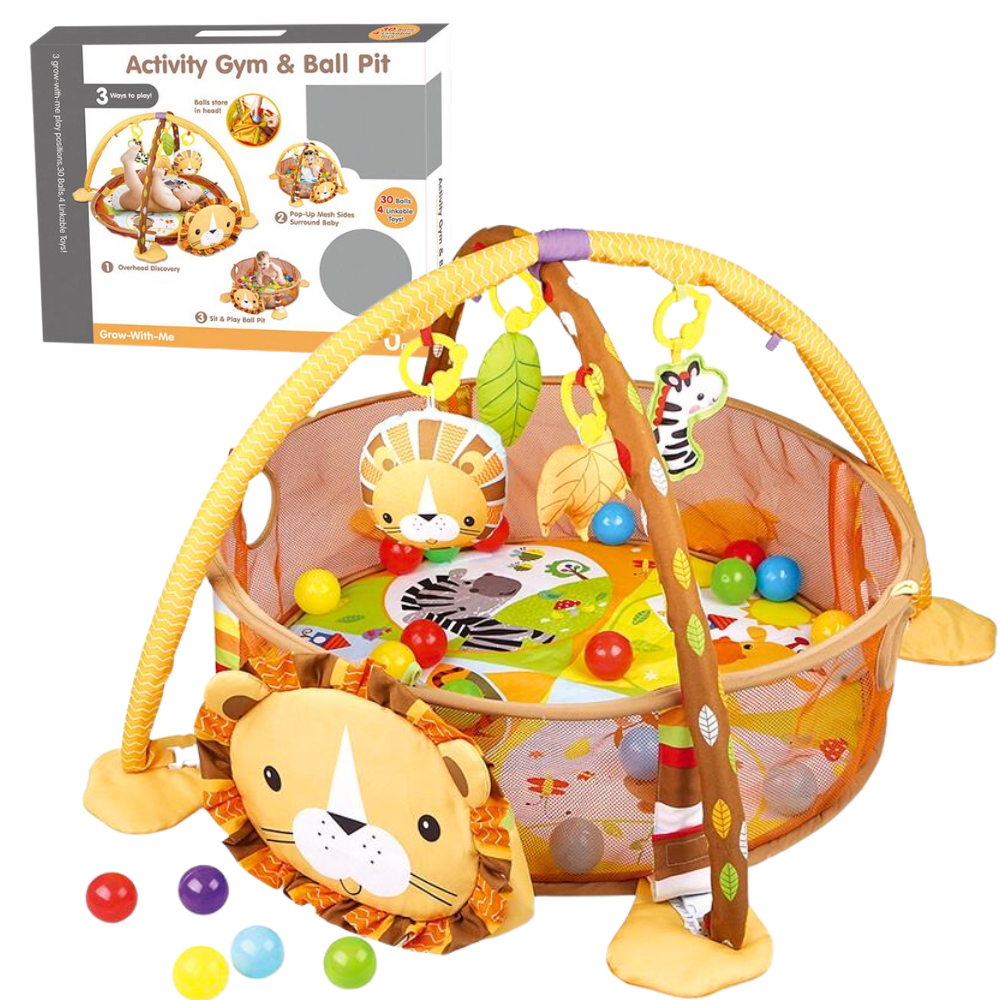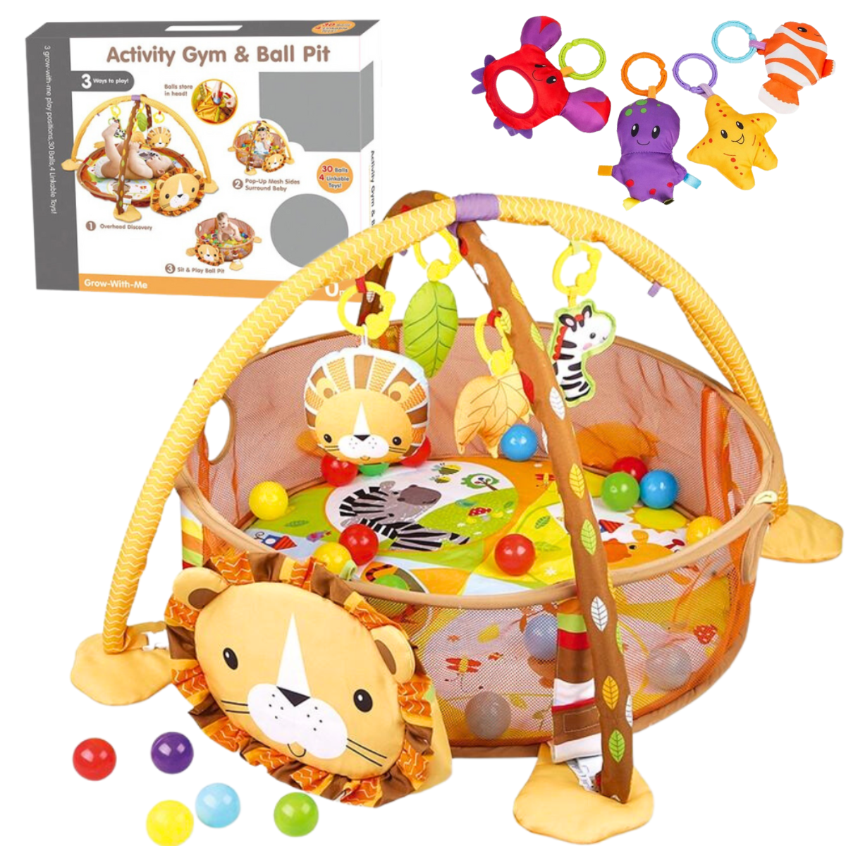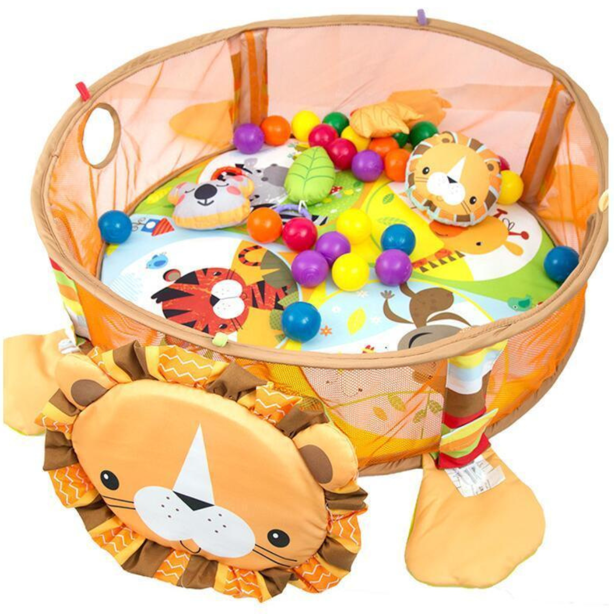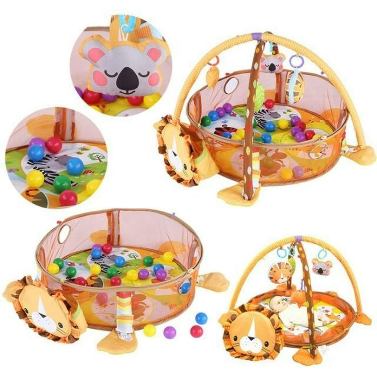 Salteluta de Activitati pentru bebelusi tip tarc Cu 30 De Bile in forma de Leut, stimuleaza dezvoltarea senzoriala, motorie si coordonarea celor mici.