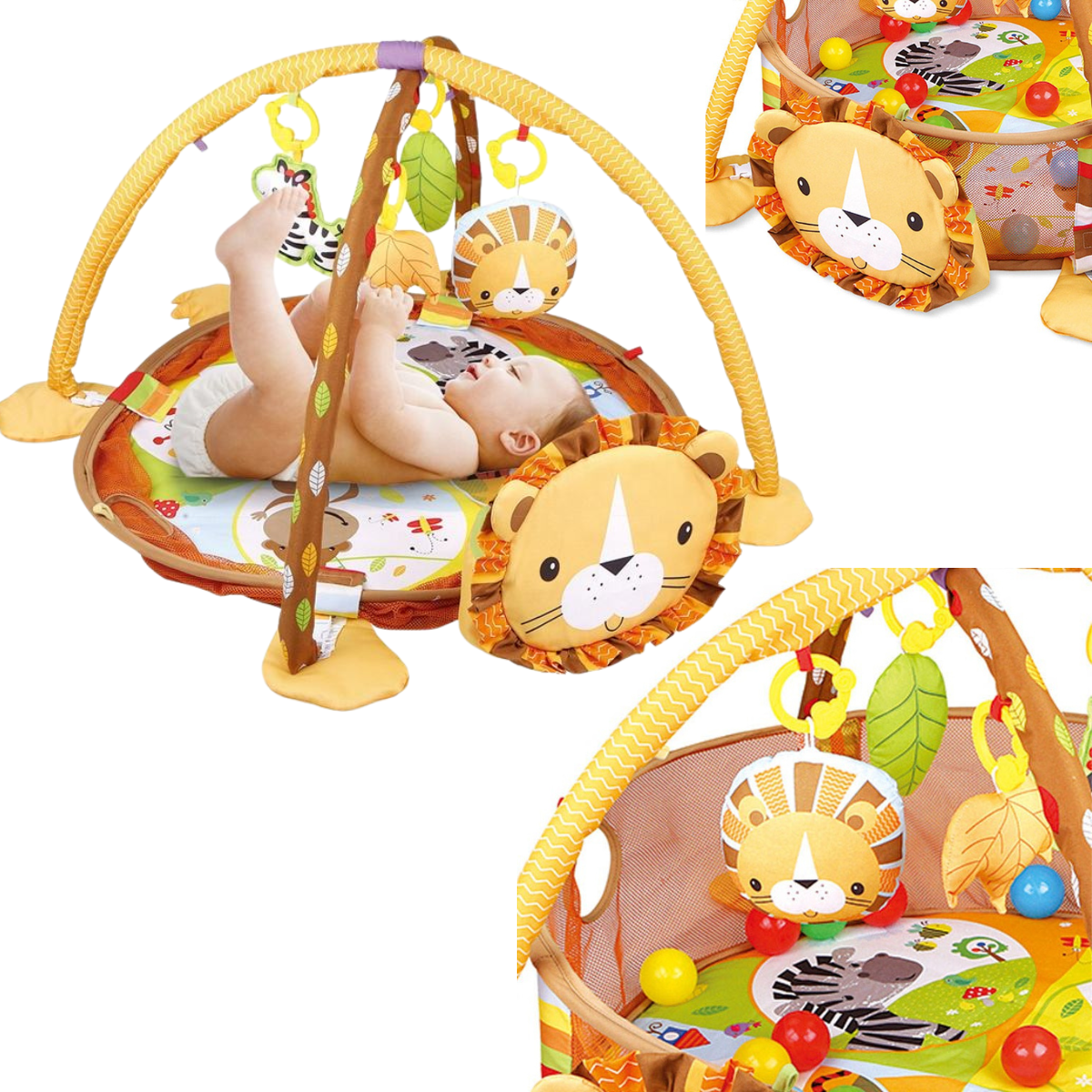 Centru de activitati cu arcada pentru bebelusi si copii, salteluta de activitati se transforma intr-un tarc de joaca unde bebe se poate juca in siguranta in perioada in care incepe sa se ridice in sezut, se va intinde dupa jucarioare, ii puteti oferi si bilele colorate pentru distractie maxima.