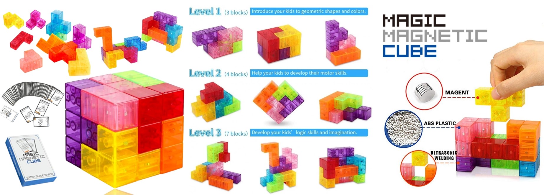 - Cubul blocurilor de magnet este realizat din ABS ecologice si materiale magnetice permanente, cu aspect frumos si manopera rafinata, rezistent, netoxic si rezistent la impact. Cub magnetic clar, luminos si colorant.