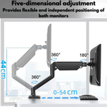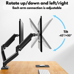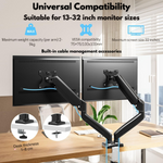 Dual Monitor Stand for Desk, Multifunctional with Adjustable Dual Arm, Included Laptop Stand, Compatible with 17"-32" Screens, Up to 9 kg, Cable Management Organizer, VESA 100x100/75x75, Clamp/Screw Mounting on Desk, Elegant and Modern Design, Black