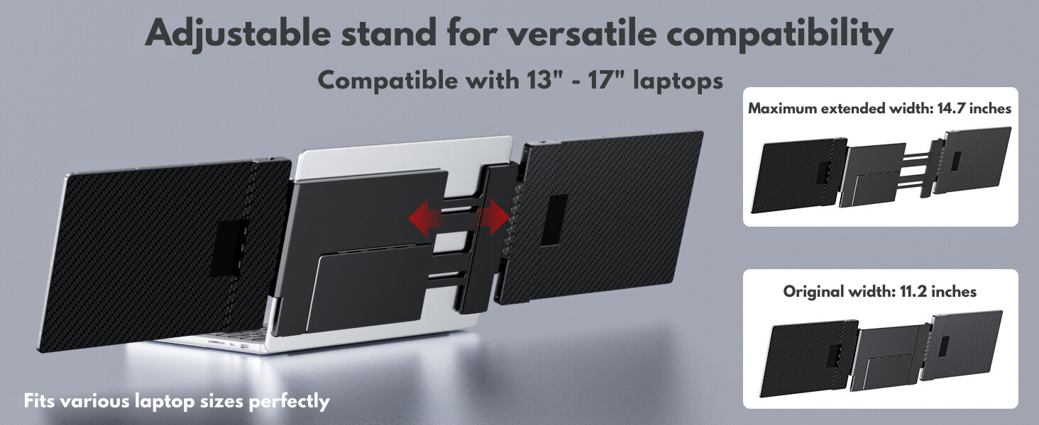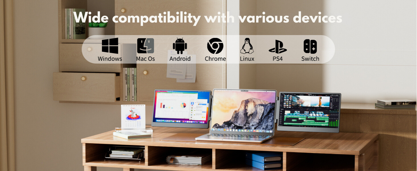 - Extended Compatibility: This portable monitor is compatible with laptops ranging from 13” to 17.3”, with a width between 11.2” and 14.7”. It works perfectly with Windows, Chrome, Mac (does NOT support M1/M2/M3 chips), and Switch. It also works great with tablets, PS5, Switch, and other devices, offering remarkable versatility.