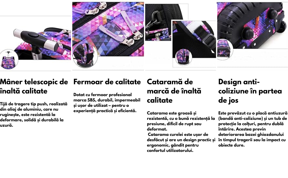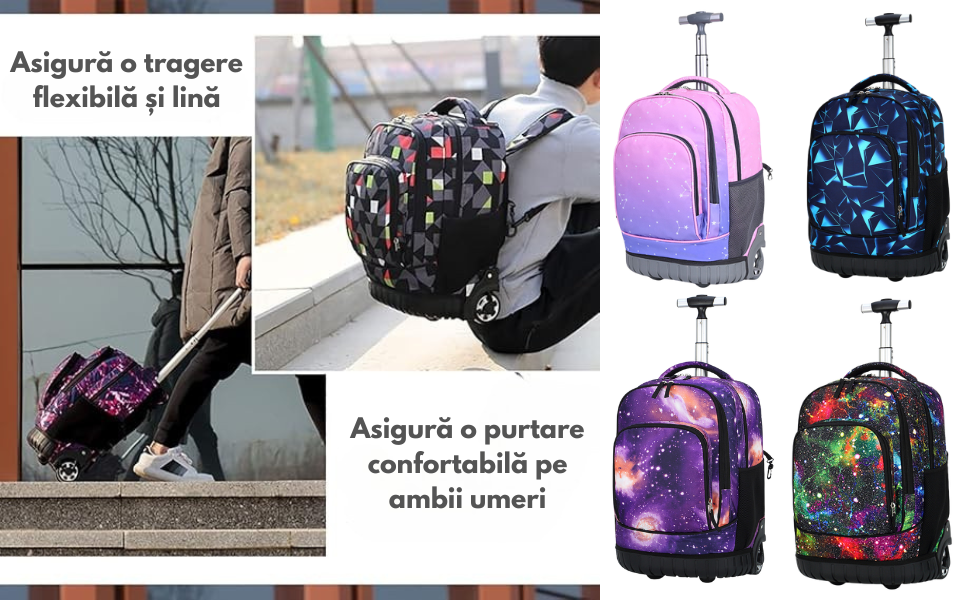 - 1x Ghiozdan cu roti si maner telescopic