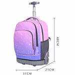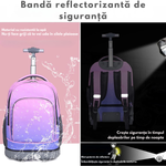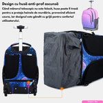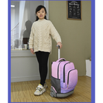Ghiozdan Troler Multifunctional cu Rotile, Rucsac de Capacitate Mare, Pentru Fete si Baieti, Ideal pentru Scoala si Calatorii, Roti Rezistente, Impermeabil, Sistem troler telescopi, Compartimente multiple, 31x21x48 cm, Roz