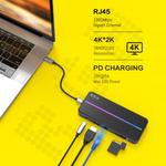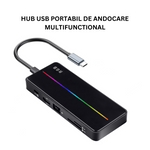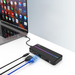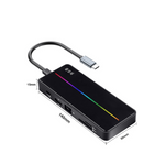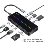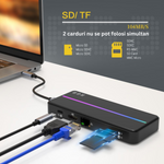 Hub USB portabil de andocare multifunctional, VisionHub®, 8 in 1 USB C, Port Internet, Cititor de carduri SD/TF, HDMI 4k, UBS 3.0, RGB cu luminare LED din aluminiu, pentru laptop