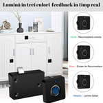 Incuietoare inteligenta fara cheie cu amprenta digitala, VisionHub®, pentru vestiare, dulapuri, sertar, mobilier, reincarcabila prin USB, Impermeabila