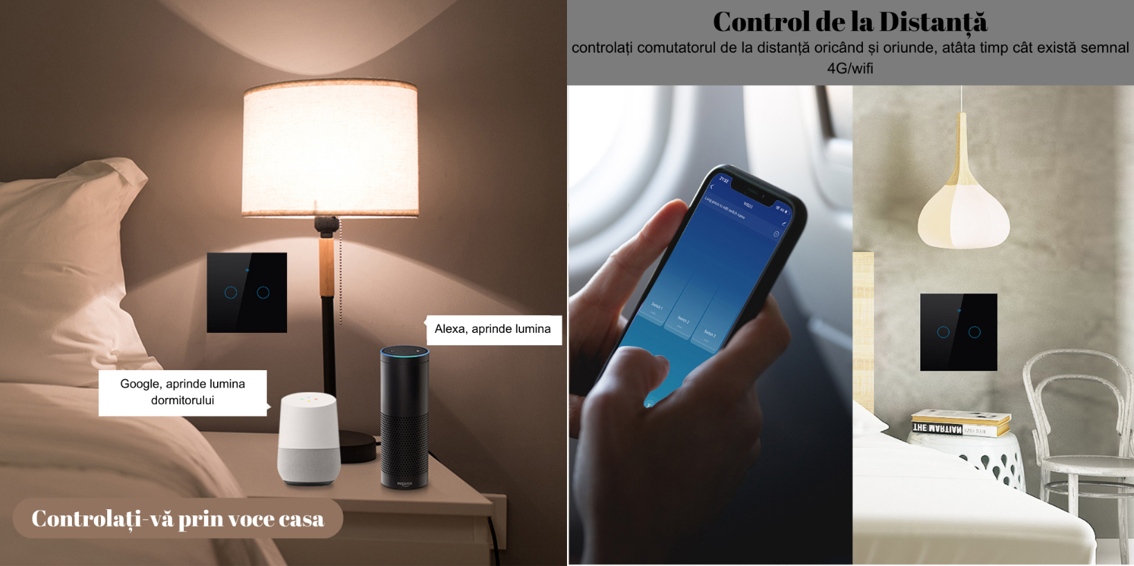 Poate fi controlat de la distanta cu telefonul mobil, indiferent unde va aflati , puteti porni sau opri luminile obtinand controlul oricand si oriunde, facandu-va viata mai confortabila zi de zi.