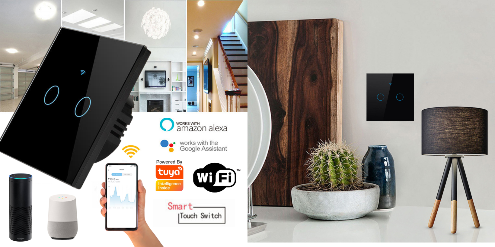 Intrerupatorul este wireless si poate fi configurat rapid si usor din aplicatia mobila Tuya Smart House.