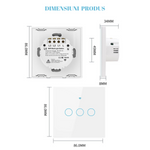 Intrerupator inteligent cu touch, Wireless, VisionHub®, Wi-fi, 3 Canale, din Sticla Securizata, Compatibil iOS/Android, Tuya, Amazon Alexa/Google Assistant, rezistent la zgarieturi, ideal pentru birou, camera de zi, dormitor, baie si bucatarie, Alb