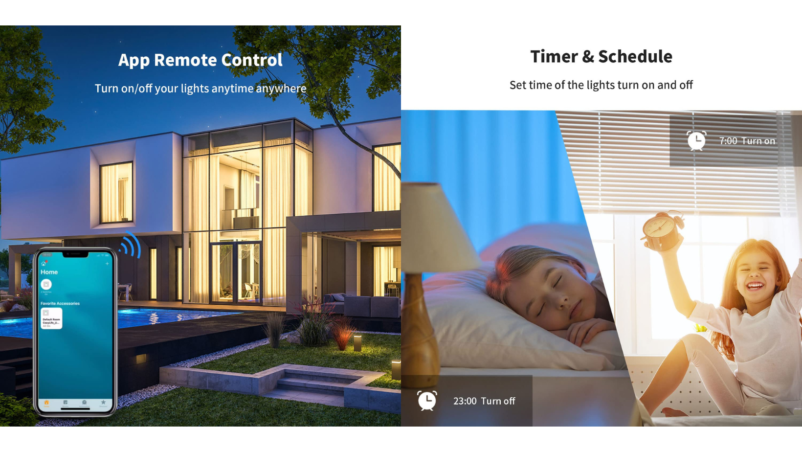 Poate fi controlat de la distanta cu telefonul mobil, indiferent unde va aflati , puteti porni sau opri luminile obtinand controlul oricand si oriunde, facandu-va viata mai confortabila zi de zi.