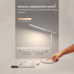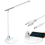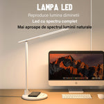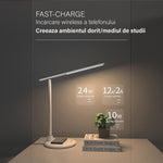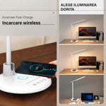 Lampa de birou/ noptiera LED, incarcare Wireless 10w pentru telefon Andoid si IOS, Pliabila cu protectie a ochilor, lumina pentru studiu, Control tactil, reglare intensitate, lumina in 5 culori calda/rece 2900k-6000k, Temporizator inchidere