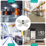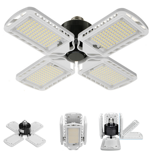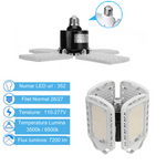 Lampa LED cu 4 brate mobile ajustabile, VisionHub®, putere 60W, Bec Iluminare pentru interior Garaj/Depozit/Atelier, 4 aripi Pliabile cu 352 LED-uri, flux luminos 7200lm, lumina alba rece 6500K