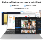 Laptop Ultra-Performant 15.6” IPS FHD (1920x1080), Intel N95 (12th Gen) pana la 3.4GHz, 8GB RAM, 256GB SSD (Extensibil pana la 2TB), Windows 11, Baterie 10000mAh, WiFi & Bluetooth 5.2, Tastatura Full Size cu Cititor Amprenta, 4 Difuzoare Stereo, HDMI, USB