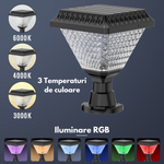 Lumina Solara de Gradina pentru Stalpi / Gard - LED cu 6 culori RGB si 3 moduri de iluminare Neutru/Cald/Rece, Rezistenta la Apa si Intemperii IP65, Panou Fotovoltaic de Inalta Eficienta, Iluminare Automata, Baterie 1800mAh, Ideala pentru Exterior