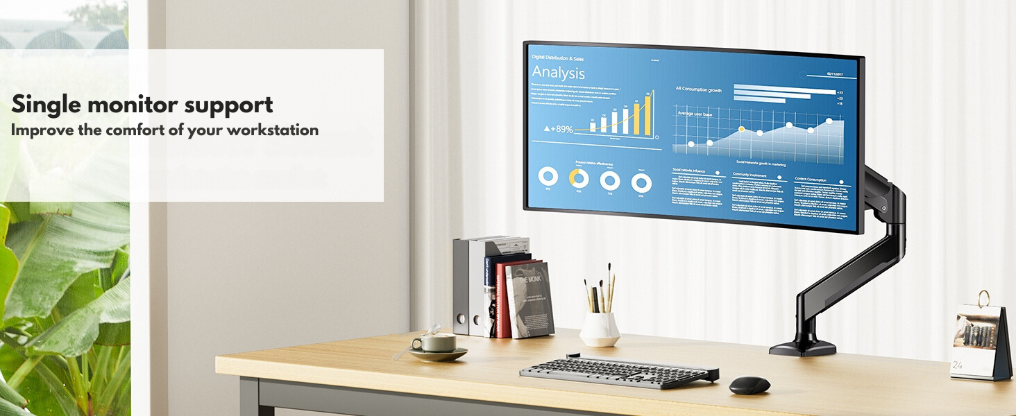 Transform your desk into an ergonomic, modern, and organized space with this premium monitor stand, perfect for screens ranging from 13” to 32” and weighing up to 10kg (22 lbs). Ideal for office use, gaming, or creative tasks, this articulating arm provides maximum flexibility, a durable design, and features that will enhance your posture and productivity.