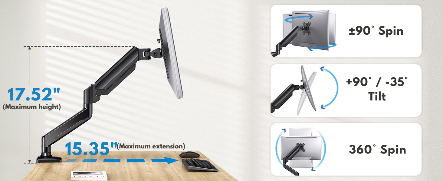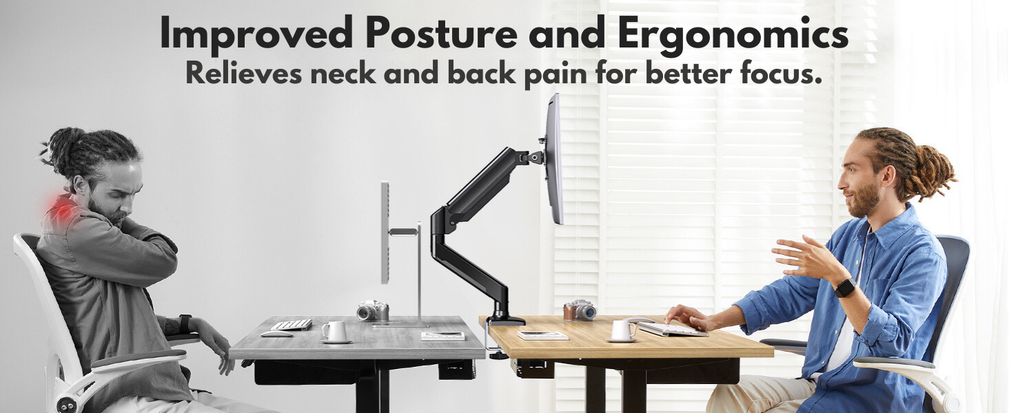 ✅ Ergonomic Design for Improved Posture: Adjust the monitor to the optimal height to prevent neck and back pain. The articulating arm helps promote proper posture, reducing fatigue during long working hours.