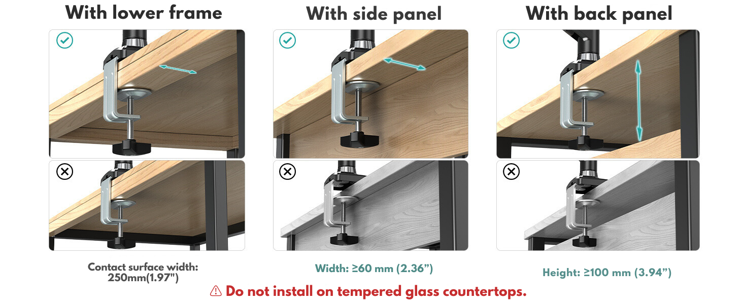 - C-Clamp Mounting: Compatible with desks up to 0.39” – 3.3” thick.