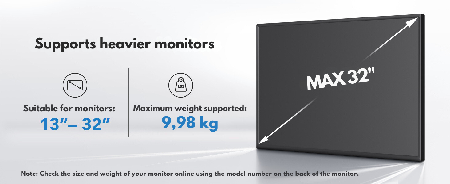 ✅ High Capacity - Up to 10 kg: The stand can support heavier monitors (up to 22 lbs / 10 kg), making it perfect for large screens without compromising stability.