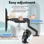 Monitor Stand for Desk, Multifunctional with Adjustable Arm, Included Mounting Bracket, Compatible with 13"-32" Screens, Up to 9kg, Cable Organizer, VESA 100x100/75x75, Clamp/Screw Mounting on Desk, Elegant and Modern Design, Black