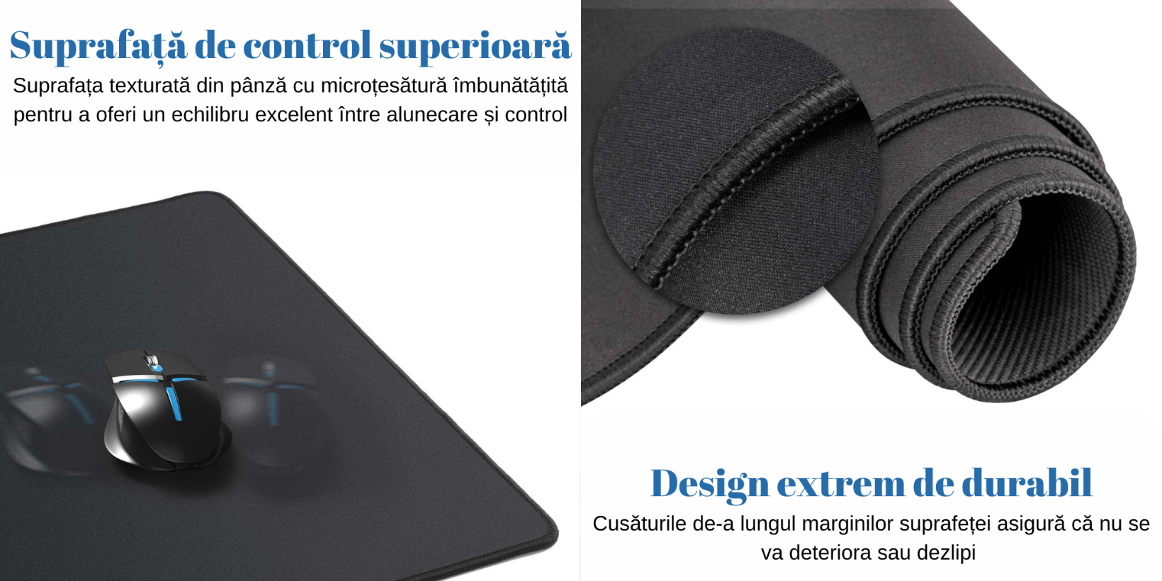 - Materiale rezistente, care va vor mentine mousepad-ul in uz timp de luni sau chiar ani de zile.