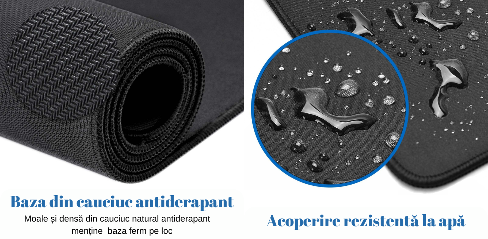 - Suprafata anti-alunecare care ofera o stabilitate deosebita si asigura ca mousepad-ul nu aluneca pe birou in timpul jocurilor