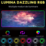 MousePad profesional Gaming RGB mare XXL, Lumini LED, Suprafata moale, Baza Anti-Alunecare Cauciucata, Multiple moduri de iluminare, Luminozitate Ajustabila, 900x400x4mm Stelar