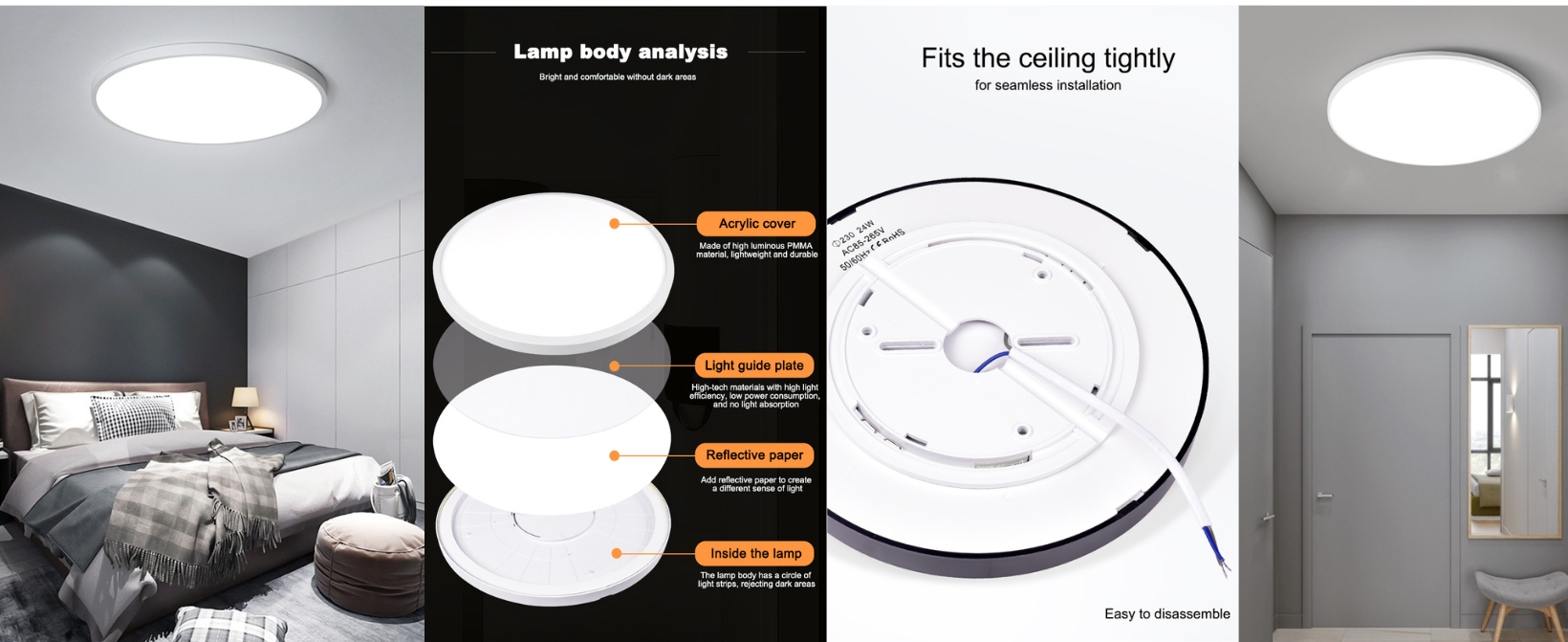 Instalare usoara: Lumina de plafon cu montaj suprapus poate fi instalata in doar 2 pasi, montarea usoara a lampii LED.
