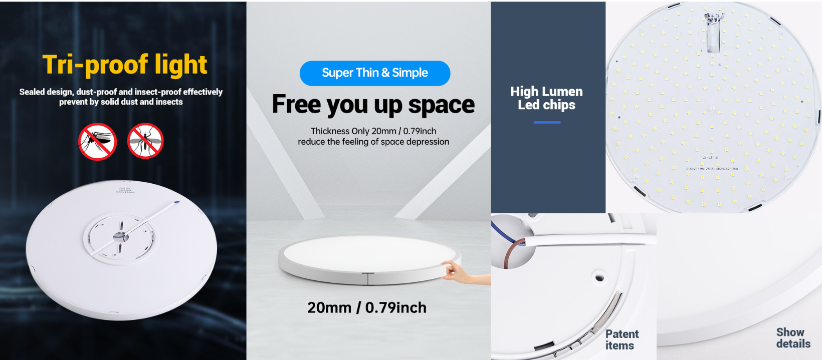 Design unic: Comparativ cu lampile de plafon traditionale, produsele noastre sunt mai potrivite pentru tavanuri mai joase, avand doar 0.2 cm grosime.