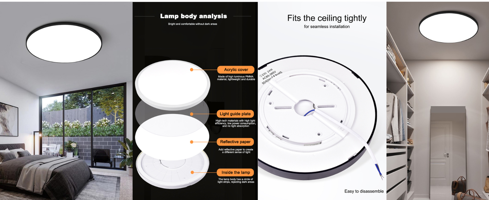 Instalare usoara: Lumina de plafon cu montaj suprapus poate fi instalata in doar 2 pasi, montarea usoara a lampii LED.