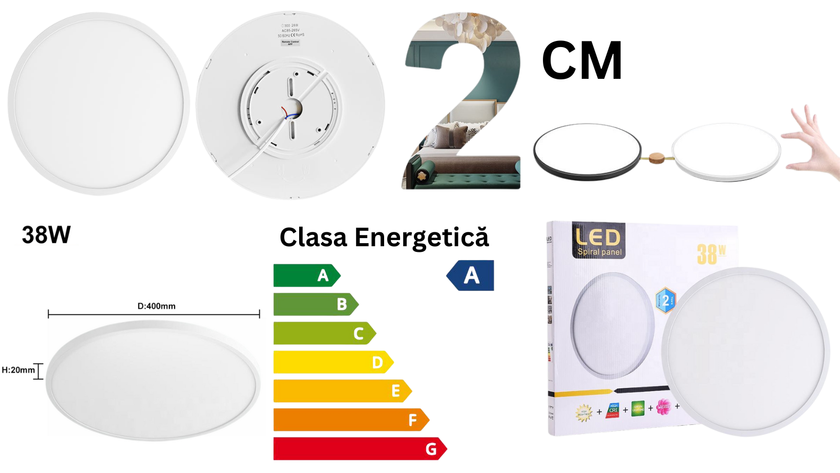 Design unic: Comparativ cu lampile de plafon traditionale, produsele noastre sunt mai potrivite pentru tavanuri mai joase, avand doar 0.2 cm grosime.