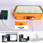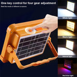 Lampa / Proiector solar LED portabil multifunctional, cu 192 de LED-uri, 4 tipuri de iluminare, Waterproof, Incarcare telefon, Indicator led baterie, Maner, Carlig de prindere, lumina alba, calda, mixta, rosu...