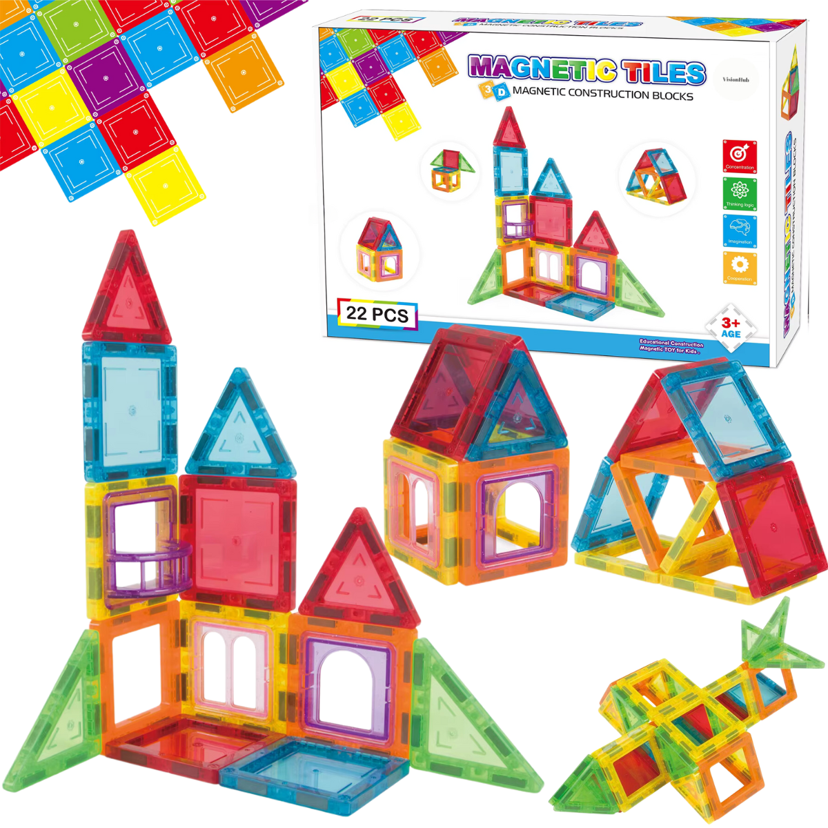 Set de Constructie, Magnetic Tiles 3D, 22 Piese colorate, Jucarie Creativa si Educationala STEM VisionHub®, multiple forme de constructie, Dezvoltarea Abilitatilor Motrice si a Imaginatiei, Multicolor