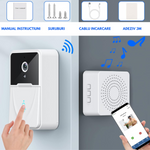 Sonerie cu Interfon Video Smart Wireless fara fir VisionHub®, Camera Video 1080P HD cu Vedere nocturna, Impermeabila IP65, convorbire in 2 sensuri, control la distanta prin aplicatie Android/iOS, WiFi, Alerta Vizuala, Alba