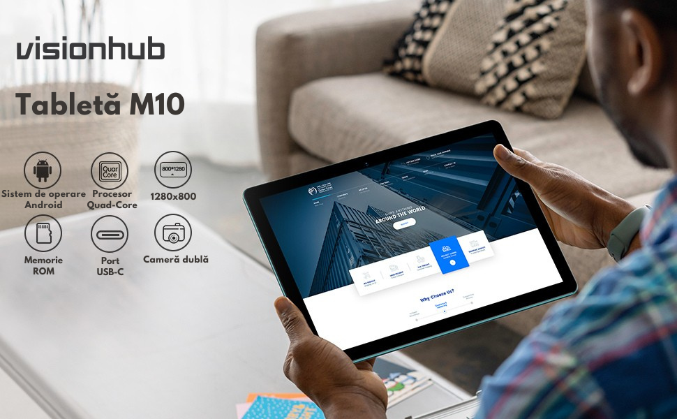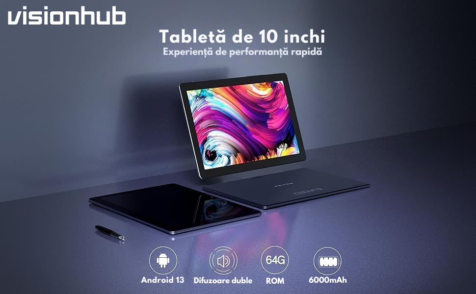 Tableta 10 Inchi VisionHub® Tronpad - Android 13, Performanta Rapida, Ecran HD IPS, Android 13, 64GB Stocare, 4GB RAM, Baterie 6000mAh, Camera Duala, USB-C, GPS, Wi-Fi