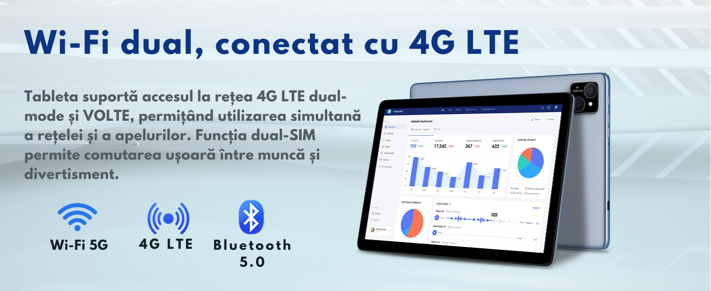 🌍 Conectivitate avansata – 4G LTE Dual SIM, WiFi 5G, Bluetooth 5.0 si GPS