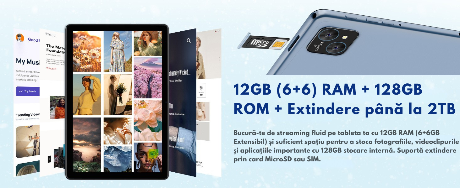 🚀 12GB RAM (6+6GB Extensibil) + 128GB ROM + Suport MicroSD 2TB