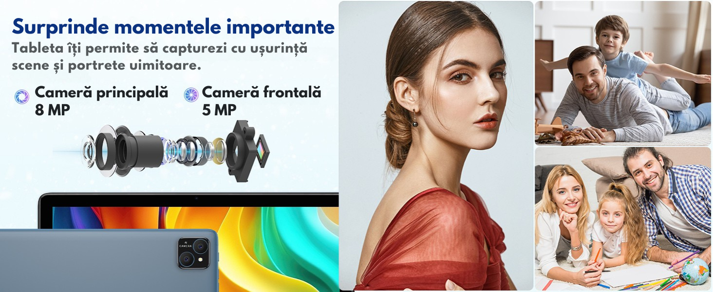 Fie ca iti doresti sa surprinzi momente speciale sau sa participi la conferinte video, aceasta tableta ofera imagine clara si detaliata.