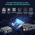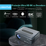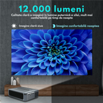 Videoproiector portabil Full HD VisionHub®, Android 9.0 si Wi-Fi & Bluetooth, 12 000 Lumeni, Proiector cu Rezolutie 1920 x 1080 HD, Suport 4K/8K, HDMI, VGA, AV, USB, Dolby Digital Audio, Mirroring pentru Android/IOS, difuzor integrat, Telecomanda smart