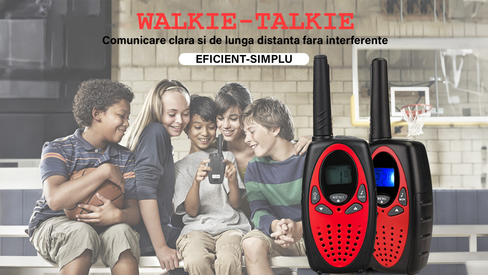 Cadou excelent pentru copii. Walkie talkie-ul poate stimula interesul copiilor pentru comunicare si le permite sa se bucure de aventurile in familie sau de aventurile in aer liber.